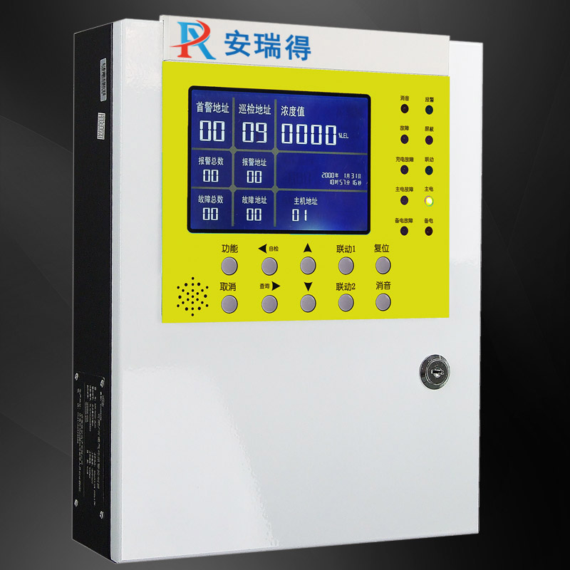 ARD-K6000-ZL型可燃有毒氣體控制器通過(guò)查詢方式獲得探測(cè)器信息,經(jīng)過(guò)高速CPU數(shù)據(jù)處理,通過(guò)LCD顯示出探測(cè)器相應(yīng)的濃度、狀態(tài)并輸出相應(yīng)的控制信號(hào)。