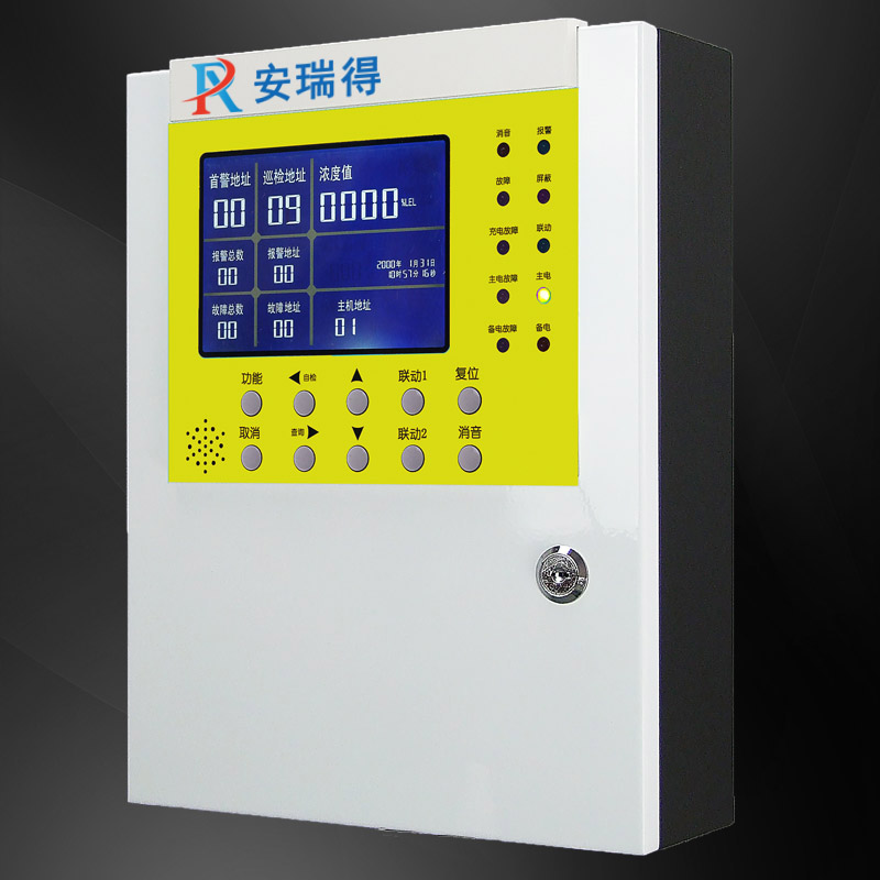 ARD-K6000-ZL型可燃有毒氣體控制器通過查詢方式獲得探測器信息,經過高速CPU數據處理,通過LCD顯示出探測器相應的濃度、狀態(tài)并輸出相應的控制信號。
